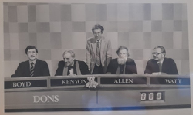 The winning team representing St Andrews were Kevin Philpott (Medieval History), Stephen Watt (Philosophy & Linguistics), Andrew Preiss (Physics), and Alan Frith (History). In their end of series special against a team of St Andrews Dons they played John Allen, Stephen Boyd, John Kenyon, Donald Watt and (reserve, who uniquely was swapped in for Donald Watt halfway through the game) Donald Bullough. They chose three microfiche readers for the library as their prize.
